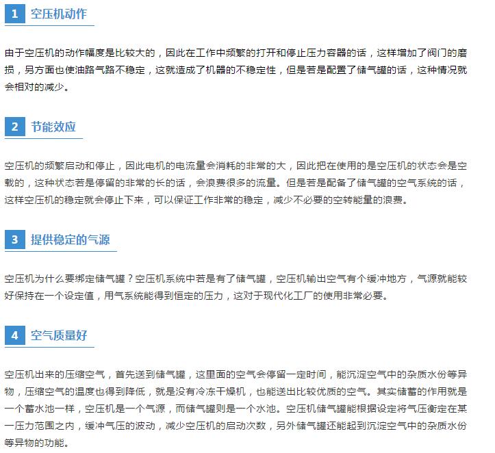 最近關(guān)于空壓機(jī)儲(chǔ)氣罐接到了很多網(wǎng)友的提問,下面就給空壓機(jī)使用者總結(jié)一下儲(chǔ)氣罐的潛在作用。![]()