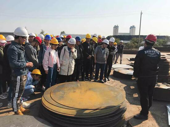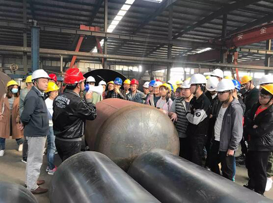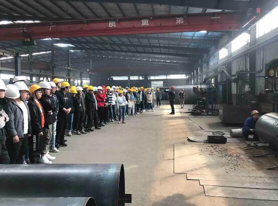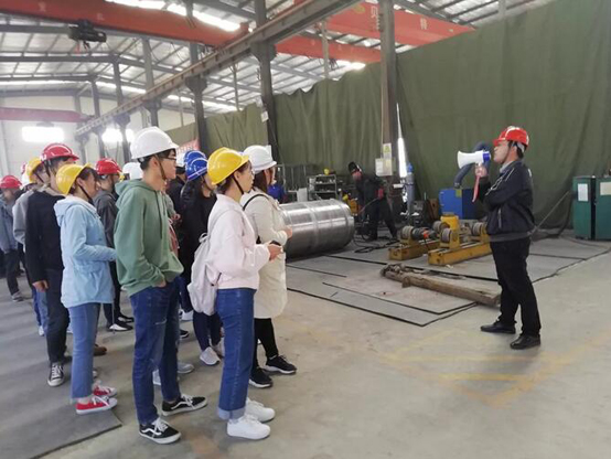 姜總監(jiān)生動(dòng)形象介紹壓力容器的生產(chǎn)工藝、生產(chǎn)過(guò)程、下料、水壓試驗(yàn)……,同學(xué)們還重點(diǎn)參觀學(xué)習(xí)了自動(dòng)焊、二保焊、氬弧焊等焊接工藝。