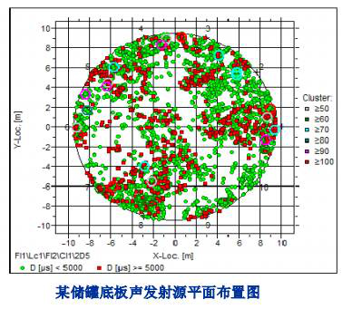 儲罐底板的聲發(fā)射檢測示意圖如下所示